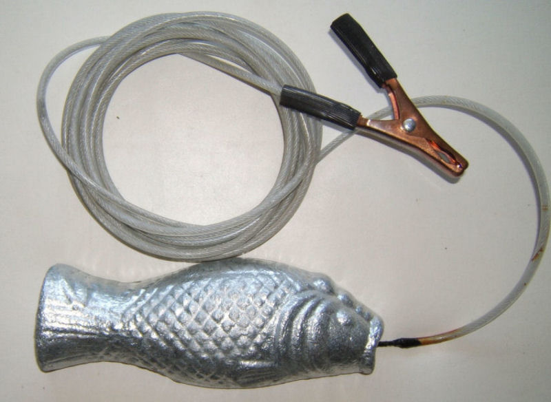 The Grouper hang-overboard zinc anode is a heavy weight anode attached to an electrically conductive cable with an aligator clip on the end.
